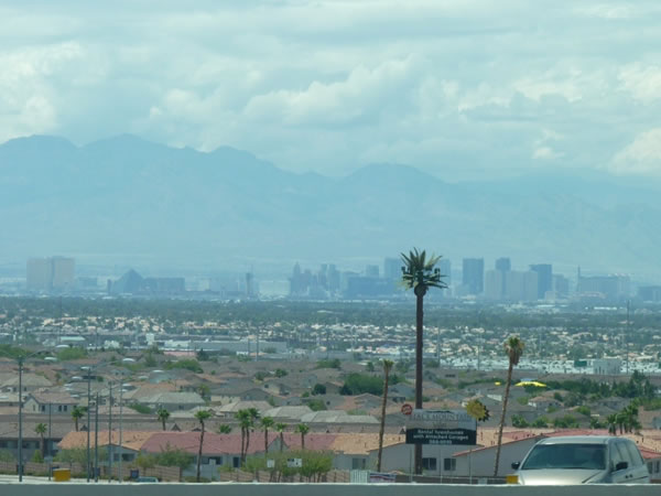 While we were driving into Las Vegas (seen here in the distance), the temperature was almost 100 degrees F (38º C).