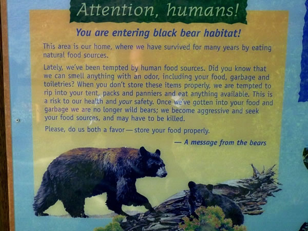 I particularly liked this message from the bears. We stored our food properly, and possibly as a result didn’t see any bears.
