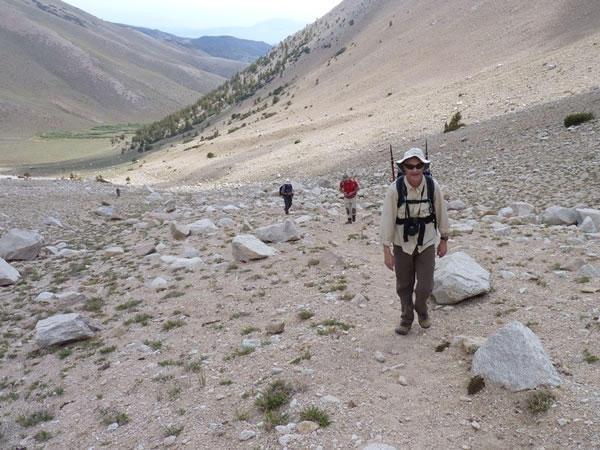 Shortly after 9:00 am, after we’d been going for an hour-and-a-half, Eric and I caught up with and passed the two climbers we’d seen in front of us. They were from Britain; Eric and I were not the only peak-bagging foreigners in Nevada! Simon Jenkins in the red shirt is from Dundee, and David Litherland (we think that's his surname) is from London. |