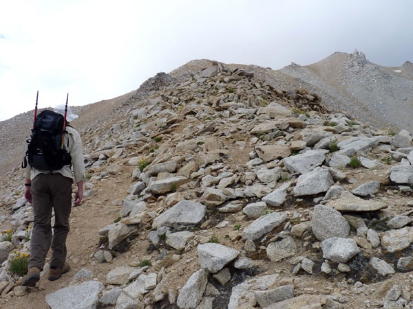Eric setting out along the north ridge, heading towards the summit of Boundary Peak, which is the highest point on the skyline. We wondered how long it would take us to reach the summit. We guessed about an hour, and that’s indeed what it took us.