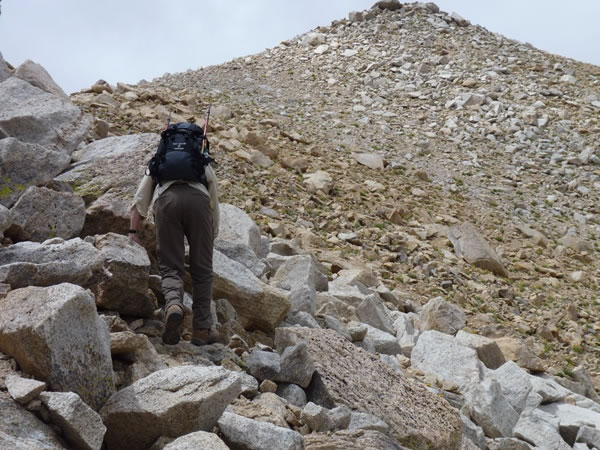 Answer: We clambered round the right-hand side – the western side – of the boulder outcrop, which proved to be the last obstacle prior to the summit.