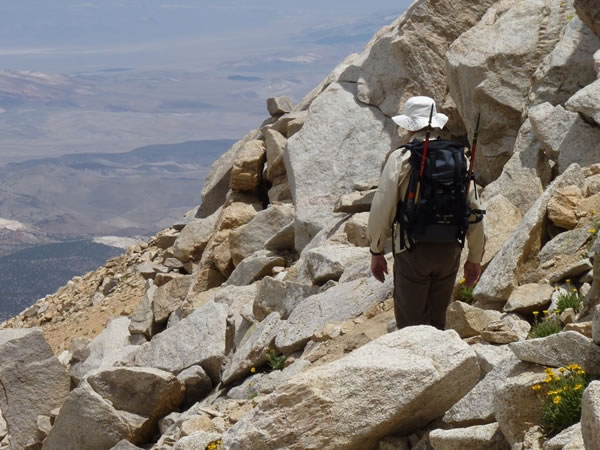 Eric making his way back down through one of the boulder fields on the north-east ridge of Boundary Peak.