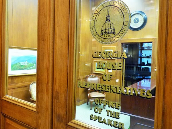 Looking through glass panels in the doors to the office of the Speaker of the Georgia House of Representatives, I spotted …