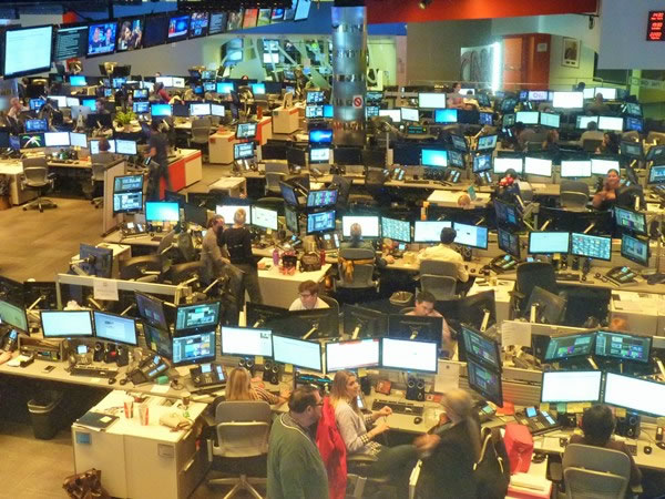 Looking down into the CNN newsroom.