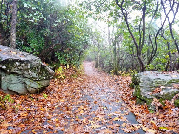 A carpet of wet fallen leaves adorned the path to the summit of Brasstown Bald.