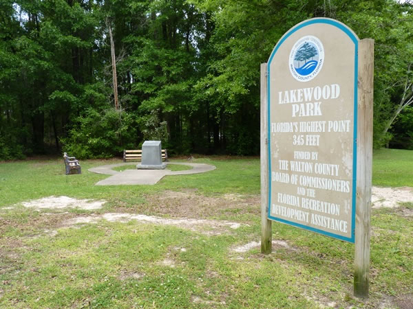 The granite plinth at the top of Britton Hill is in front of the right-hand bench.