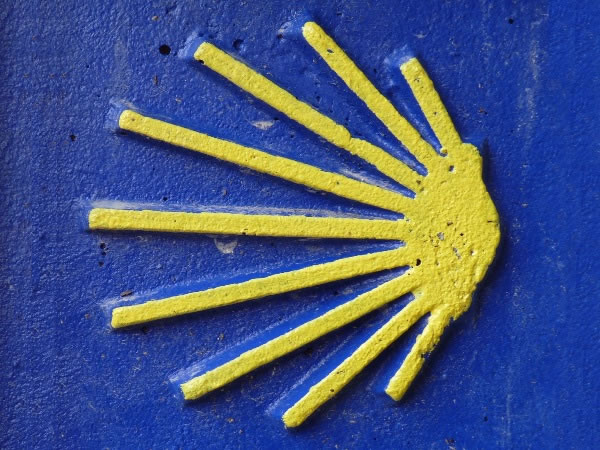 Along the Camino, stylised scallop shell symbols are frequently used to point the way to Santiago de Compostela.