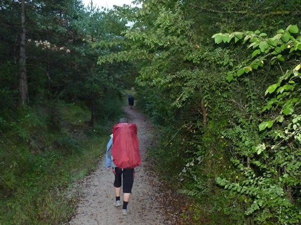Walking along a woodland path, heading towards Akerreta shortly after eight o’clock in the morning.