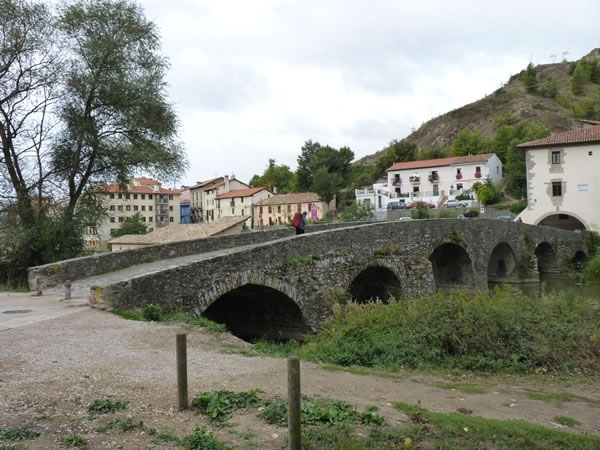 Day 2 (Saturday, 25 September 2010) – Larrasoaña to Pamplona (16.5 kms): Heather crossing the Puente de Arre, a medieval footbridge that leads into a small town called Trinidad de Arre (or Villáva), the birthplace of the Spanish cycling star, Miguel Indurain, who won the Tour de France on five consecutive occasions. |