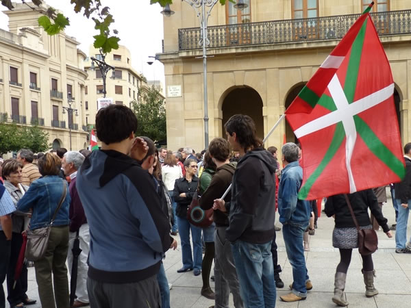 Day 2 (Saturday, 25 September 2010) – Larrasoaña to Pamplona (16.5 kms): Pamplona is the capital of the Navarra region and close to Spain’s Basque country, and in the early evening there was a demonstration in one of the city’s squares in favour of greater Basque autonomy. The young man near the centre of the picture is carrying a large Basque flag. |