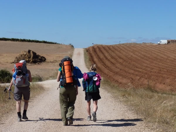 heading towards Los Arcos. From left to right are Eva from Sweden, Elin Baptiste from Sweden, and a Norwegian woman from Oslo.
