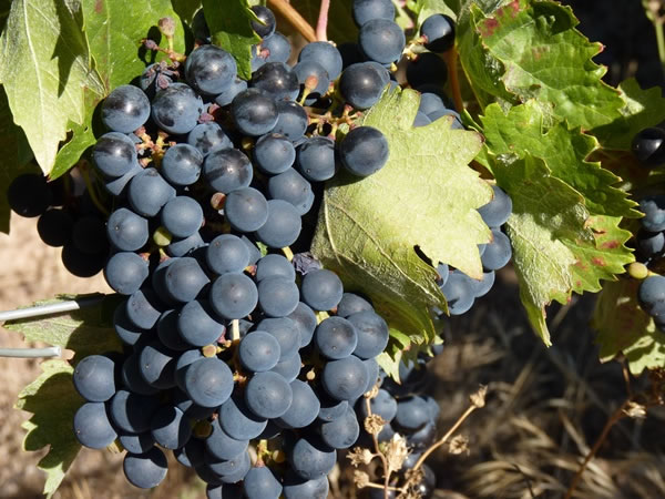 Grapes glistening in the noon-day sun.