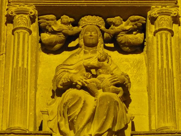 A floodlit Santa Maria on the walls of the church that’s named after her in Los Arcos.