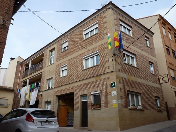 We stayed in this pleasant private hostel in Navarrete. (Incidentally, our washing dominates the front right-hand portion of the hostel’s clothes line.)