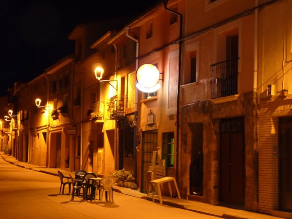 Day 8 (Friday, 1 October 2010) – Navarrete to Azofra (23.8 kms): The building alongside the tables in the street is the small restaurant in Azofra where we had dinner, and this is a good spot to pause and look at some of the food we had on the Camino de Santiago. |