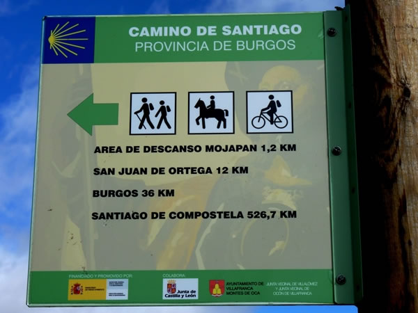 A sign in Villafranca Montes de Oca telling us how far we had to go to reach a range of destinations.