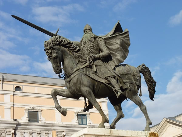 A statue of El Cid in Burgos. The 11th-century warrior who expelled the Moors from Valencia was born near Burgos and is buried in the cathedral.