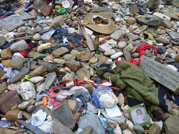 A Camino tradition is for pilgrims to leave a stone (or a small memento) at the foot of the cross.