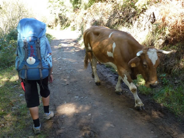 Day 19 (Tuesday, 12 October 2010) – Trabadelo to O Cebreiro (20.5 kms): After a fairly flat walk of about 12 kms, we began climbing slowly and steadily up the side of the hills that form the eastern boundary of Galicia. As we went up, several farmers with small herds of cows came down the hillside towards us. (Incidentally, each herd had an average of only about seven cows in it.) |