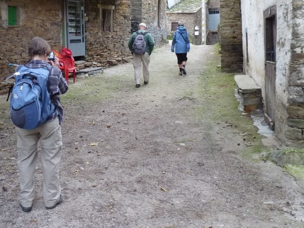 Peggy photographing Bob and Heather walking through a tiny village called San Cristobel do Real. Heather’s not carrying a pack, because …