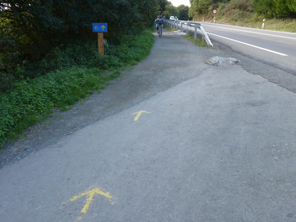 More yellow arrows and a Camino sign point the way to Palas de Rei.
