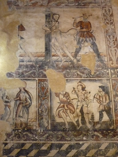 A graphic mural, full of violent images and many hundreds of years old, in the Iglesia de Santa Maria in Leboreiro.