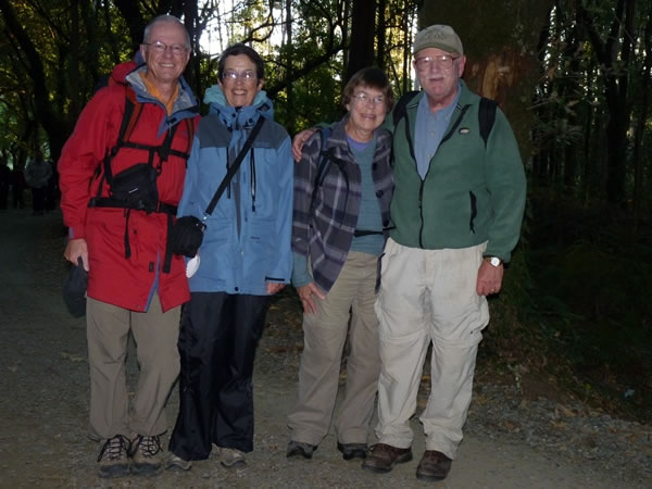 Day 26 (Tuesday, 19 October 2010) – A Rúa to Santiago de Compostela (21.0 kms): We began our last day's walk on the Camino de Santiago at 8:40 am. Shortly after we left A Rúa, I took this group photograph of the four of us as we walked through an oak forest. From left to right: Nigel, Heather, Peggy, and Bob. |