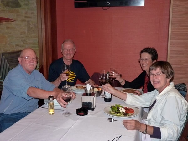 A toast to friendship and the Camino de Santiago. From left to right: Bob, Nigel, Heather, and Peggy.