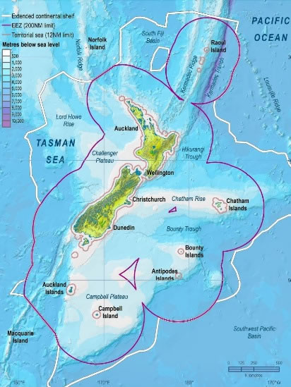 Introduction: The fact that the Kermadec islands, New Zealand’s sub-Antarctic islands, and the Chatham Islands are all part of New Zealand means that New Zealand’s EEZ – its 200 nautical mile Exclusive Economic Zone – is roughly fifteen times as large as the country’s land area. New Zealand’s EEZ is one of the world’s largest Exclusive Economic Zones (some sources say it’s the fourth largest, while others claim it’s the ninth largest). |