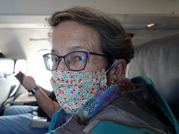 Getting there: When we left Wellington, New Zealand was at Alert Level 2 in the country’s fight against the Covid-19 pandemic. Although the disease was contained, there was still a risk of community transmission. As a result, “face coverings [were] required on public transport and aircraft.” However, I am sure that Heather was smiling when I took this photograph of her during our flight from Wellington to the Chatham Islands. (Incidentally, it’s also worth noting that when we returned to Wellington six days later, the Covid-19 Alert Level for all the country bar Auckland had dropped to Level 1, and that – as a result – face masks were no longer mandatory on public transport.) |