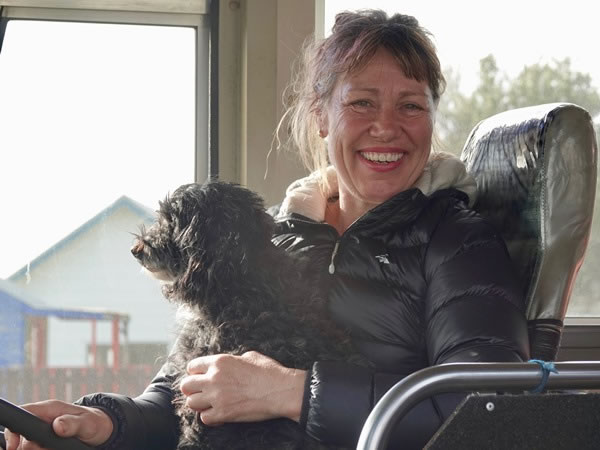 The owner of the hotel is Toni Croon, who’s seen in this picture with Pipi (described by Hamish Campbell as the Hotel Chathams’ “dogged co-owner”).