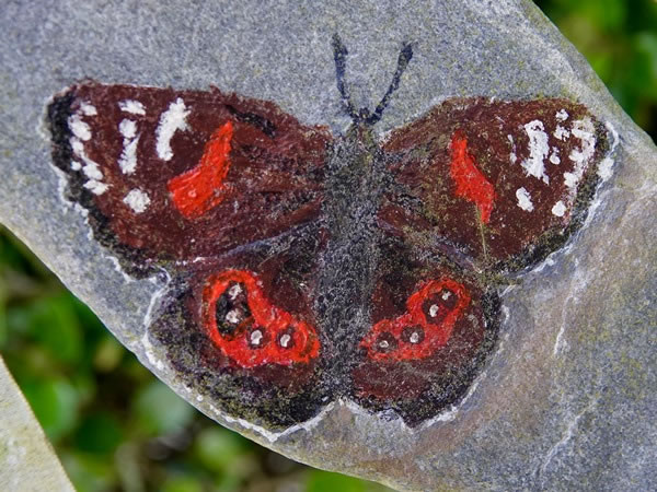 Accommodation: For our final evening on Chatham Island, we went to Admiral Farm for a special celebratory meal. The farm is not named in honour of some wandering seafarer, but for Admiral butterflies, one of which is depicted on this painted stone that I came across in the farm’s gardens. |