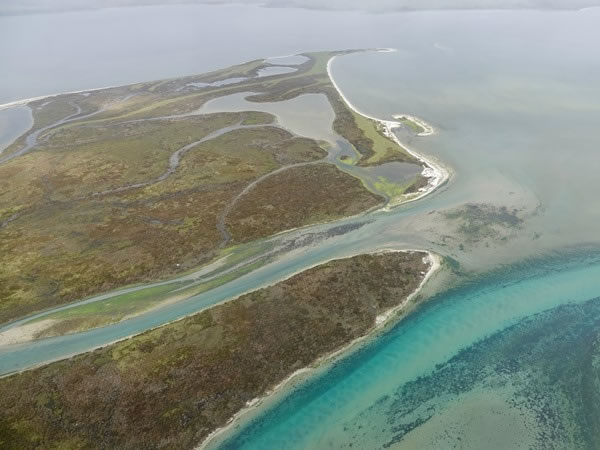 Looking down onto one of the lagoon’s outlets to the sea.