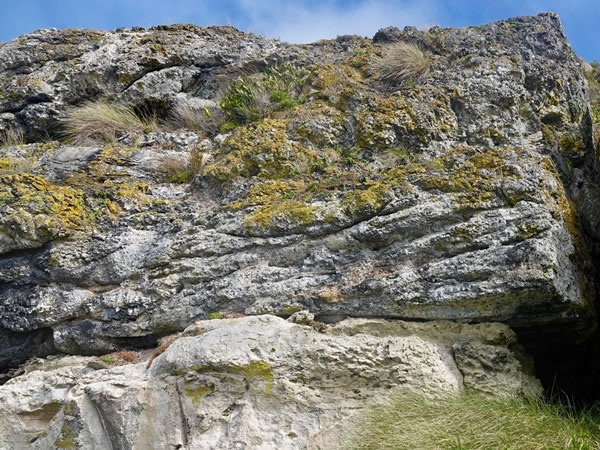 On the hills above Maunganui beach, there’s an interesting instance of limestone that has been overlaid by basalt from a later eruption.