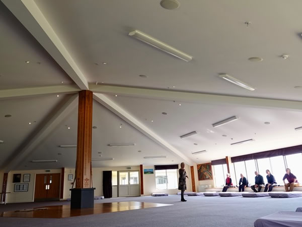 History: Susan Thorpe – wife of Maui Solomon, a grandson of Tommy Solomon – welcomed us onto the Kopinga marae, and told us about Moriori and the marae’s history. The central beam of the meeting house (which can be seen near the left-hand edge of the picture) bears the names of over 1,500 ancestors who were alive in 1835. |