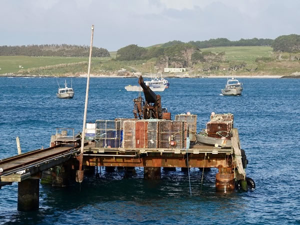Fishing – particularly for cod and crayfish – is one of the mainstays of the Chatham Islands’ economy. This is a photograph of the wharf at Kaingaroa, near the north-eastern corner of Chatham Island.
