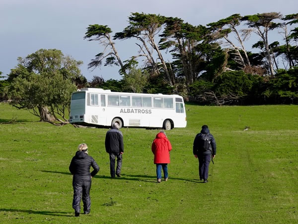 Life on the Chathams: Tourism is also an important part – an increasingly important part – of the Chatham Islands’ economy. In this photograph, four members of our party can be seen walking back to the bus after visiting the seal colony on the south-west side of Point Munning. |