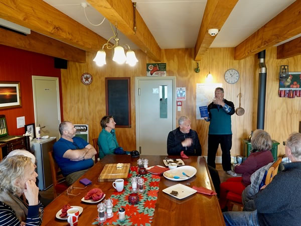 Brent Mallinson, one of the co-owners of the Flowerpot Bay Lodge, giving us an introduction to the history of Pitt Island.