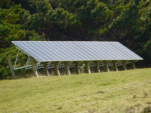 Solar cells on Maunganui Farm in the north-west corner of Chatham Island.