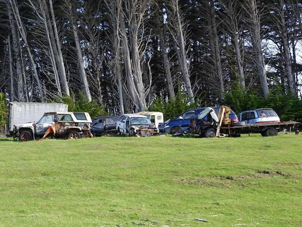 There are also a lot of old rusting cars lying about in paddocks.
