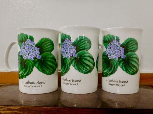 Not too surprisingly, the Chatham Island forget-me-not has become one of the island’s leading symbols – which is why the plants feature on the Hotel Chathams’ coffee mugs.