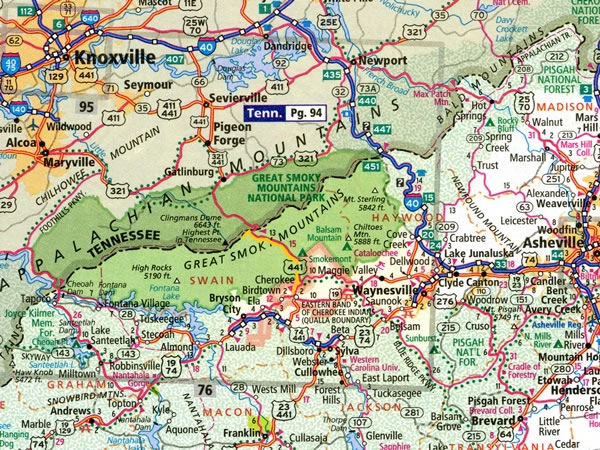 After climbing Mt Mitchell, the highest peak in North Carolina, on Thursday, 29 October 2015, I drove west along the Blue Ridge Parkway, and spent the night in Cherokee, a small North Carolina town (with a population of a little more than 2,000) that’s the reservation home of the eastern band of Cherokee native Americans. The route I took the following morning is marked in yellow on this map: I drove north-west on US federal highway 441 for 15 miles / 24 kilometres to the North Carolina / Tennessee state line near Newfound Gap, then turned left onto the road that heads up towards the summit of Clingmans Dome and drove up it for roughly four miles / six kilometres prior to parking at the Fork Ridge Trailhead on the North Carolina side of the road. |