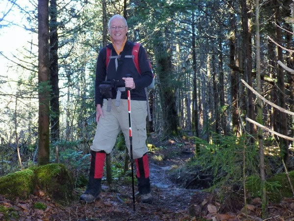 After an hour on the trail, I took this self-portrait. I wore gaiters for the hike because, after all the rain the area had experienced during the previous week, I’d expected the trail to be muddier than it was.