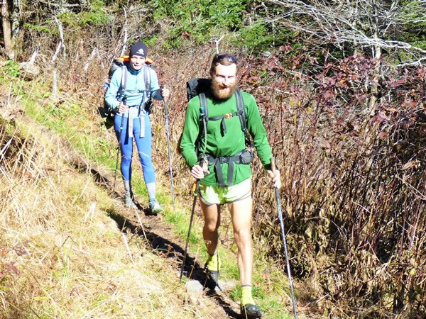 Two more Appalachian Trail “through hikers”: “Silver Fox”, on the left, was from Germany, while “Gus” was from Virginia. They’d met at the University of Alaska in Anchorage, and had started hiking the Appalachian Trail in Maine on 2 July. They estimated they’d finish hiking the trail ten days after I met them. |
