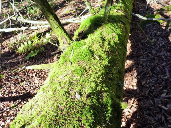 While I’m hiking and climbing, I enjoy taking photos of the vegetation I encounter. This fallen tree was covered with a bright green, fern-like moss.