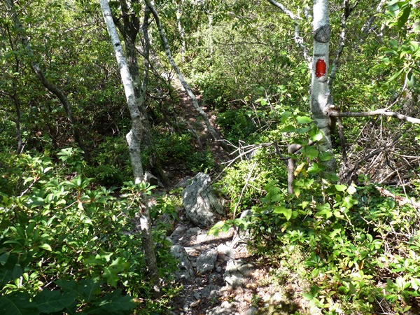 After enjoying the view from the top of Round Mountain, I continued to make my way along the red-blazed trail. Initially, the trail dropped off Round Mountain, crossed over into Massachusetts again, and made its way down to the saddle separating Round Mountain and Mt Frissell.