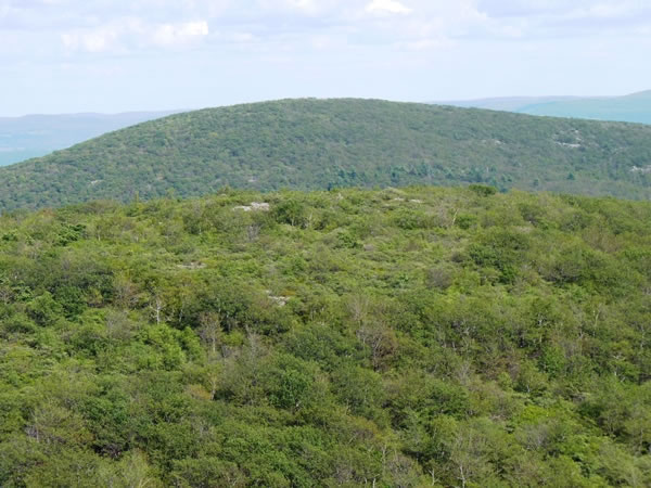 A few minutes later, a clearing beside the trail gave me a good view looking south-east across Round Mountain and towards Bear Mountain.