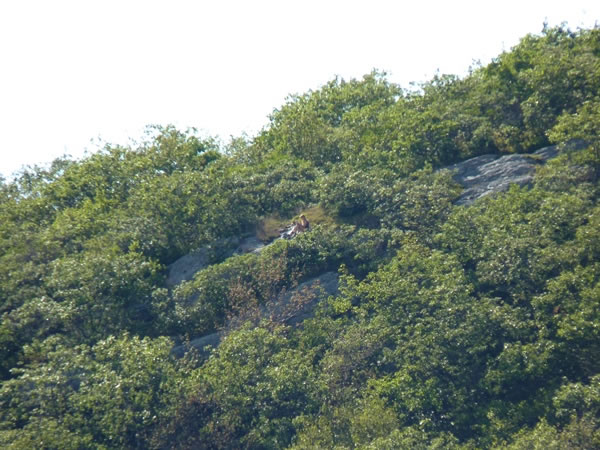 When I reached the top of Round Mountain, I looked back at Mt Frissell and spotted the young woman who’d overtaken me near the top of Round Mountain while I was heading up towards Connecticut’s highpoint. She’d found a secluded spot near the state’s highpoint and – far from the madding crowd (which clearly included rattlesnake experts and New Zealand climbers) – was now sunning herself in peace.