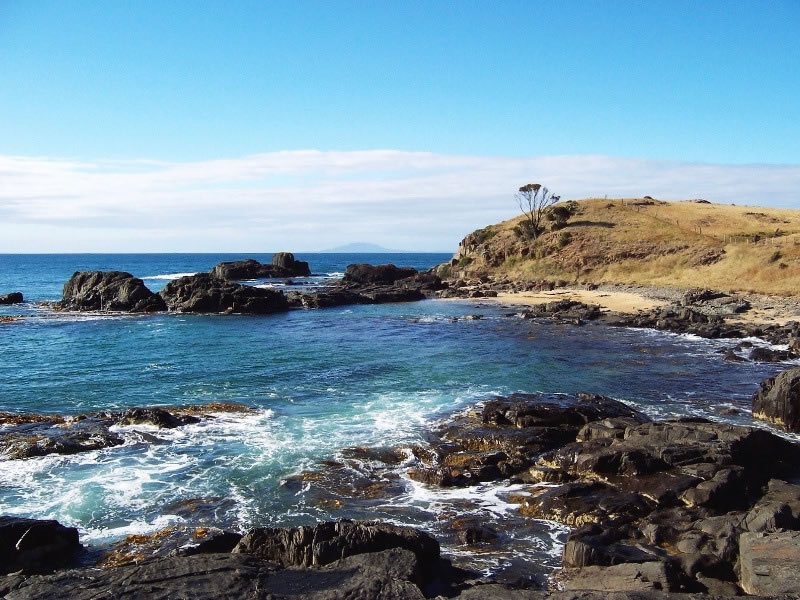 Thursday, 5 January 2006 – At the Spiky Beach Conservation Area: One of the main reasons I’d come to Tasmania eleven months after Stuart’s, Charlie’s, and my father – Bobby – had died, was to scatter his ashes in the same place. After arriving in Hobart, I’d collected Bobby’s ashes from a funeral parlour, and I carried them in one of my pannier bags while I cycled from Hobart to Swansea. When Stuart and I arrived at the beach early in the morning of 5 January, the bay was as beautiful as ever. |