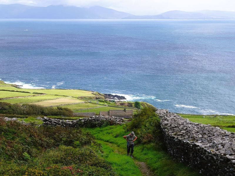 Day 1 (Thursday, 4 September 2025) – Dingle (Daingean Ui Chuis) to Dunquin (Dun Chaoin): Heather making her way up and along the path below Mount Eagle. The Iveragh Peninsula – the largest of the five main peninsulas in south-western Ireland – is visible at the top of the picture. |
